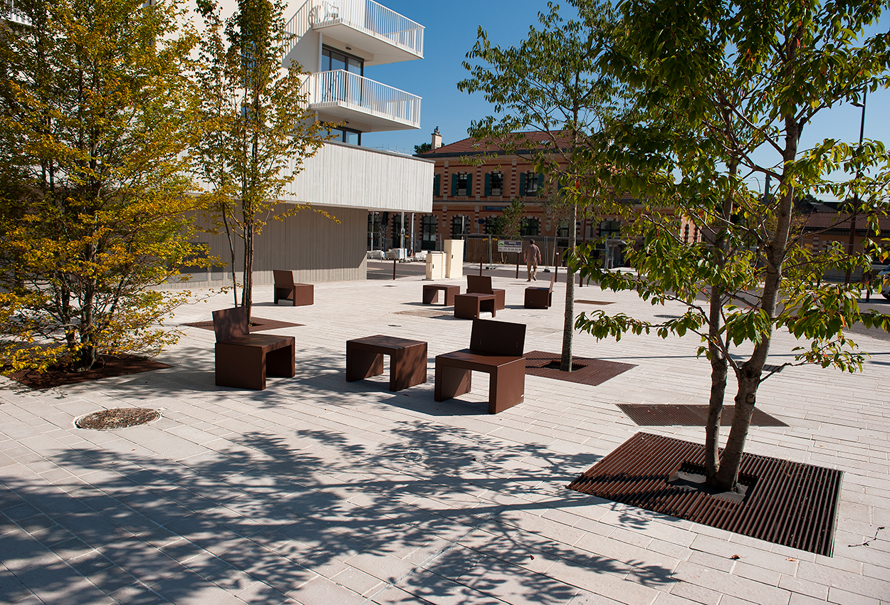 La Mission La mission consiste à élaborer un plan guide et son actualisation, assurer les missions de direction de l'aménagement, assister la ville dans les missions de communication et de concertation ainsi que sur des missions d'urbanisme opérationnel et réglementaire et enfin d'assurer la maîtrise d'œuvre des espaces publics. L’aménagement comprend un nouveau réseau viaire (desserte est et ouest), une vaste promenade en surplomb de la forêt (la terrasse), deux places piétonnes minérales et des équipements structurants : un passage sous voie ferrée gabarit camions et un parking en sous-sol d'une capacité de 200 places.